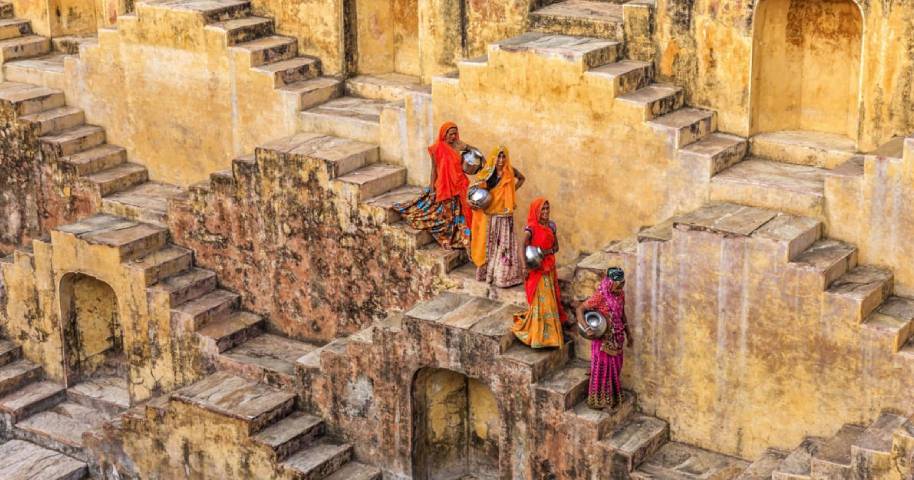 After leisurely breakfast, late morning proceed for a private road transfer to Jaipur (about 06 hours’ drive) enroute visiting Abhaneri. Abhaneri is a small village with one of India's deepest and largest step wells (also known as tank gardens). Step wells are unique to India. They were used as cool places of resort, as pools for ritual cleansing before a temple visit and as a water supply for dry weather. There is a temple adjoining the step well.